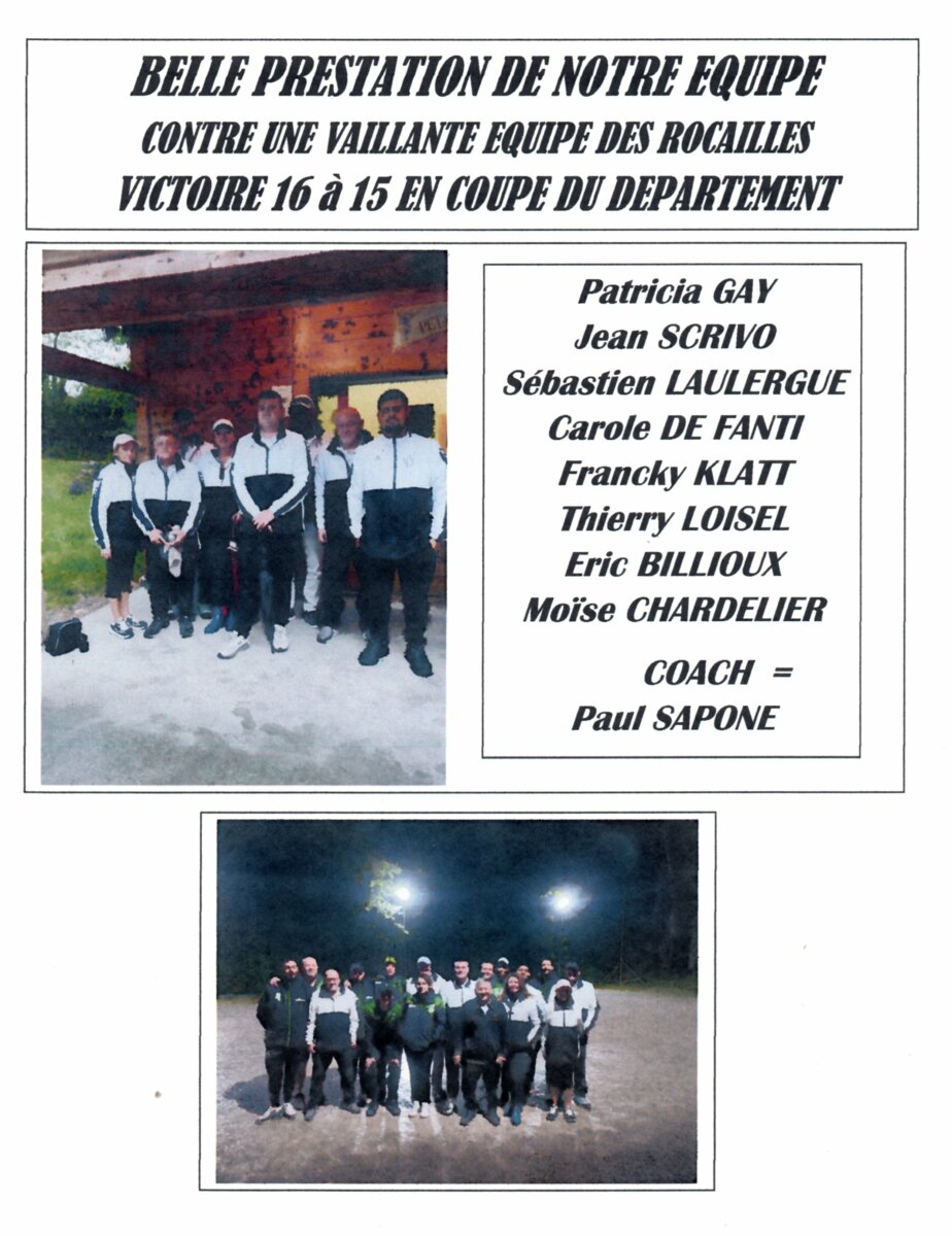 PRESTATION DE NOTRE EQUIPE EN COUPE DEPARTEMENTALE