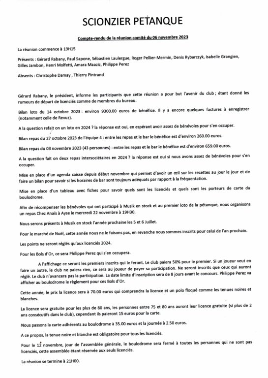 REUNION DU COMITE DU 6 NOVEMBRE 2023